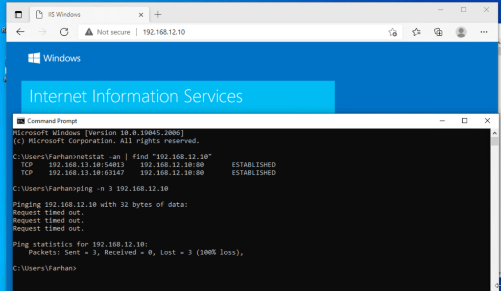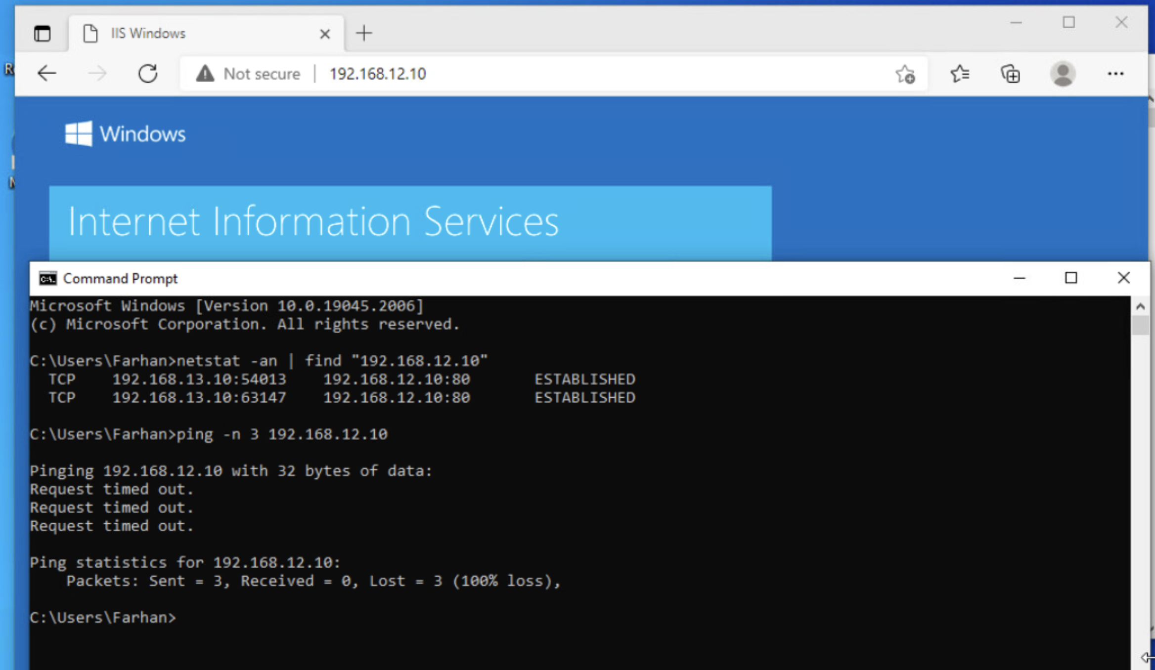 Now, I will access web service on test VM 2 from test VM 1. This is reachable.