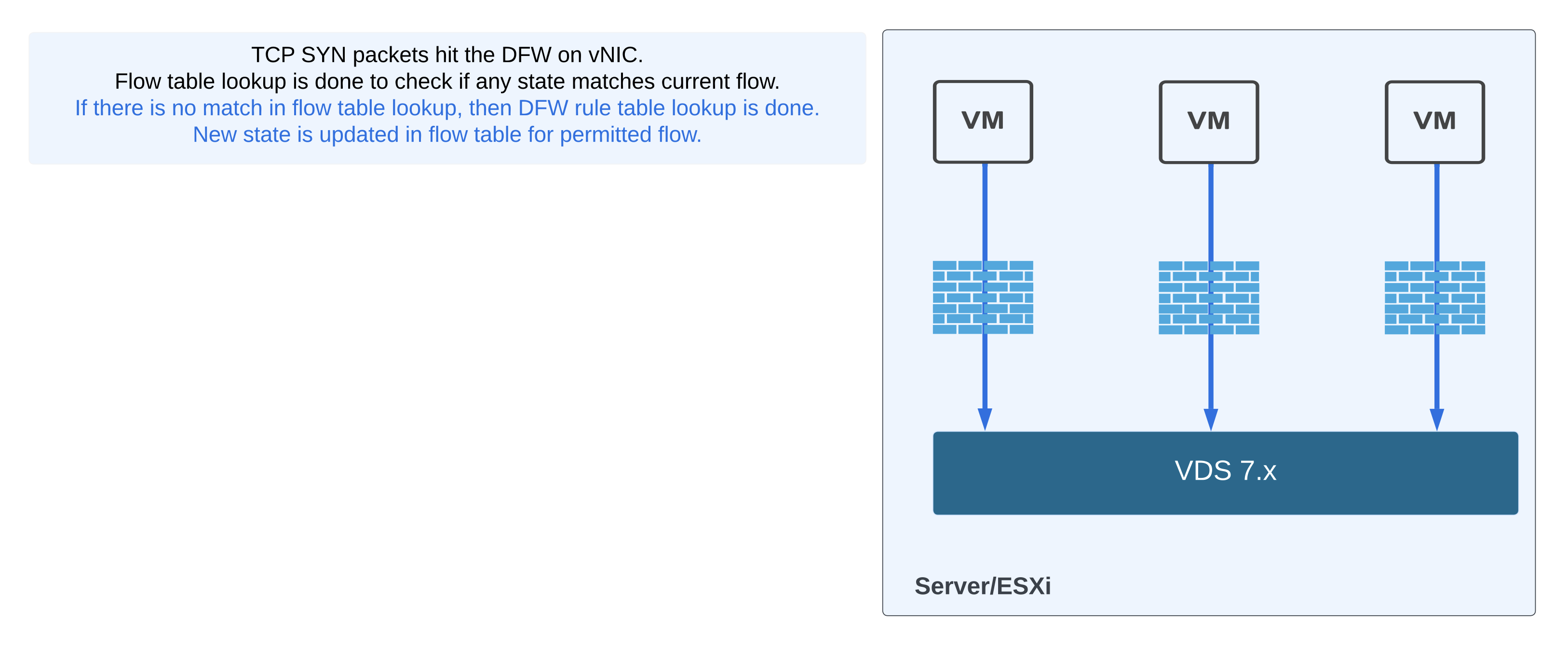 VMware NSX Distributed Firewall is software defined Layer 7 stateful firewall which provides protection at vnic level of a virtual machine. Layer 7 Application ID, FQDN filtering, identity based fire-walling are important capabilities of NSX Distributed Firewall.