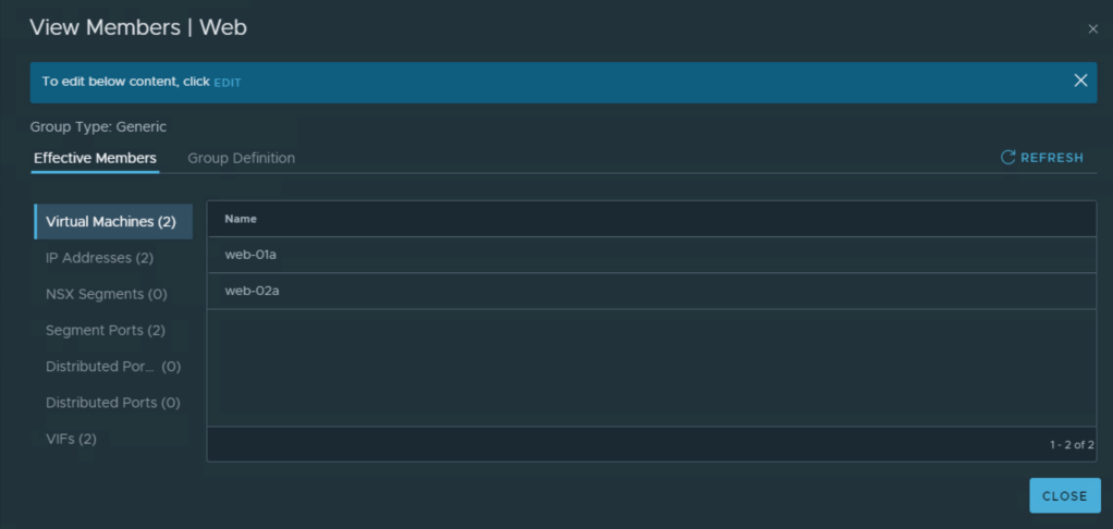 5. Create a dynamic security group ‘Web’ based on VM name as a criteria