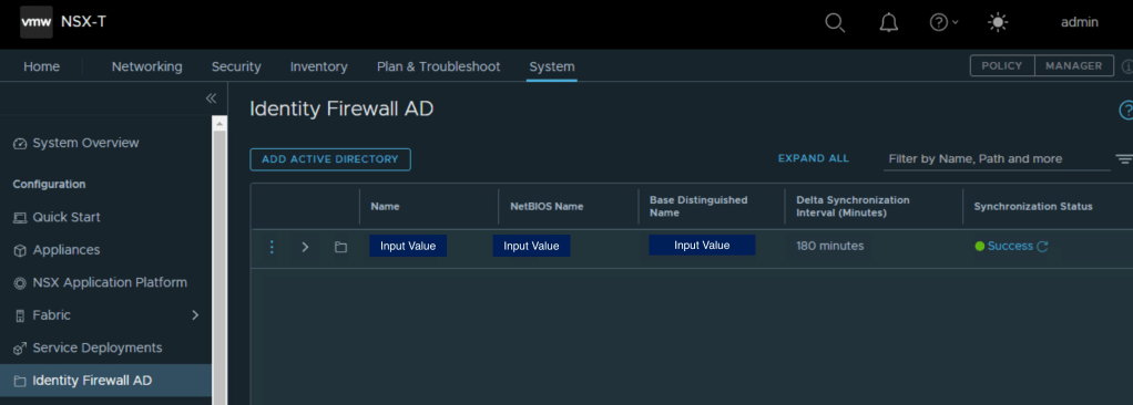 Identity firewall IDFW enables one to configure distributed firewall rules based on Active Directory user group.