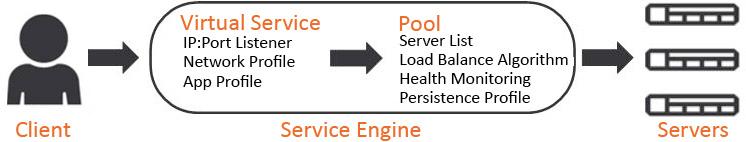 - Controller: NSX ALB control plane comprises of three controller nodes. The controller is used for management purpose. Controller places virtual service on the data plane component referred to as service engine. Controller nodes communicate with each other and with service engines. Clients access virtual service over required port as shown in the diagram below. Controller to controller latency should be under 10 ms. The health of servers, client connection statistics, and client-request logs collected by the service engines are regularly offloaded to the Controllers.