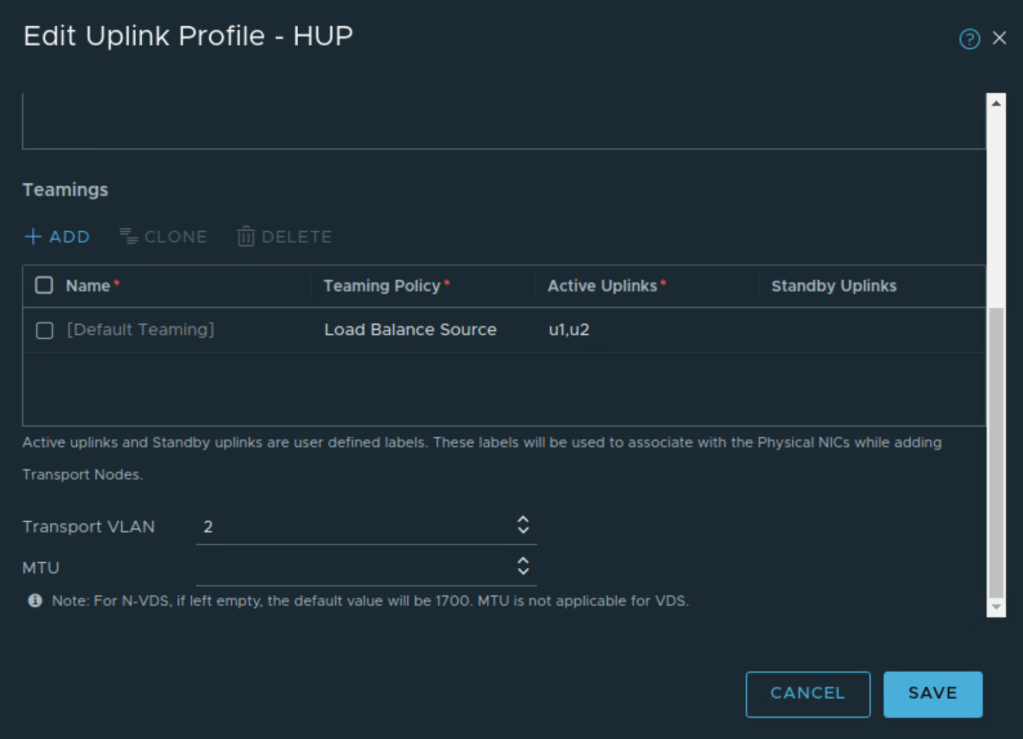 Uplink profile is created for host transport nodes/servers and I am using VLAN 2 as VLAN ID for Host Overlay Network.