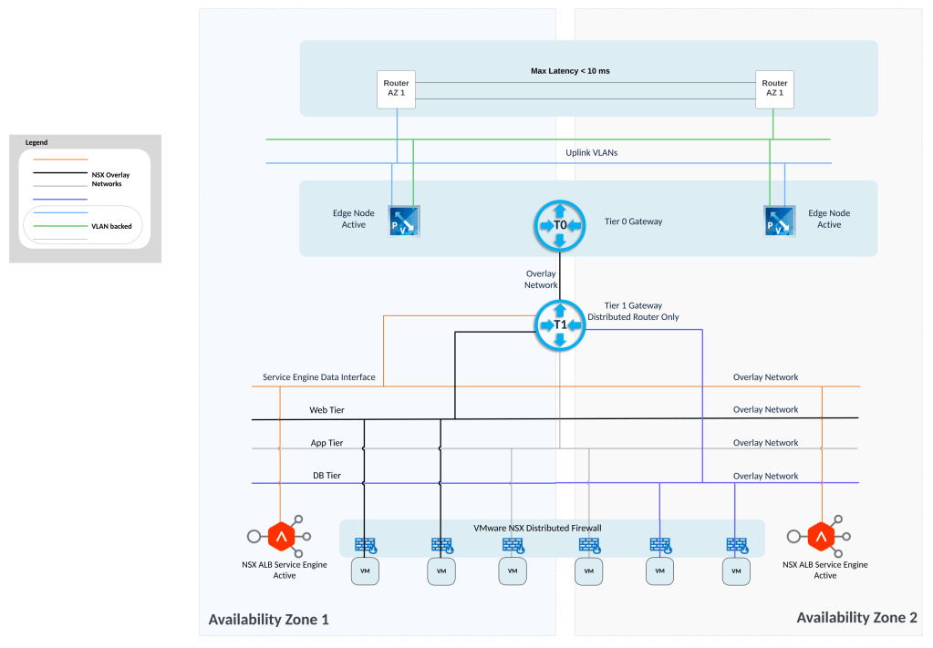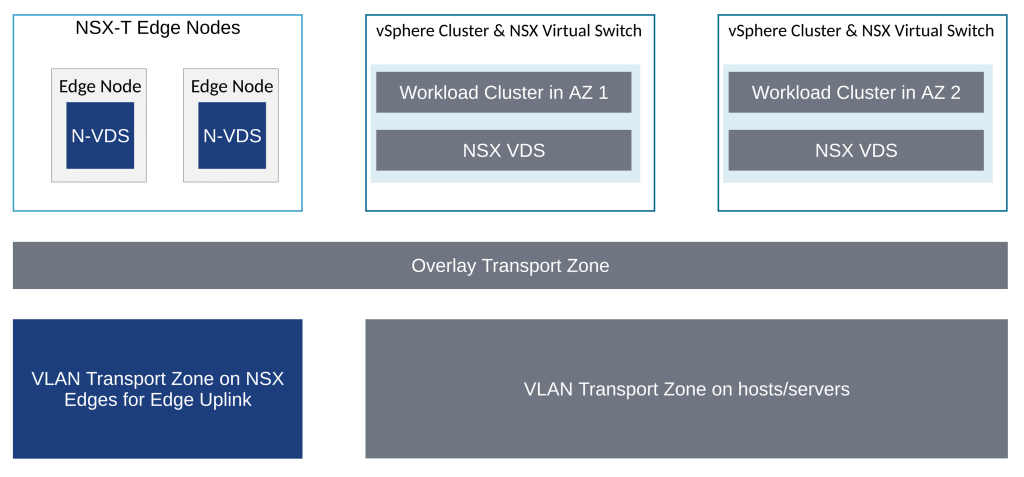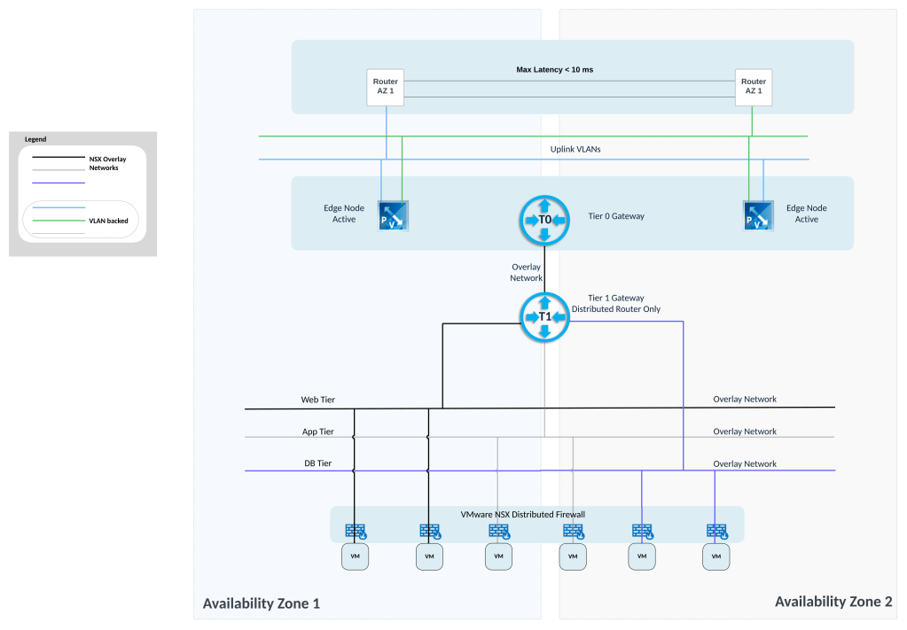 Physical network underlay is able to stretch VLANs between AZ1 and AZ2. Using this management VLAN for NSX manager will be stretched so as to utilize cluster VIP feature on NSX manager.