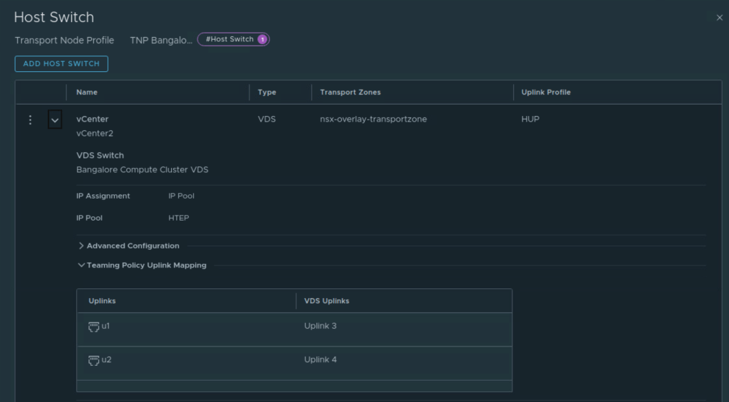 Similarly, transport node profile named ‘TNP Bangalore’ is created.