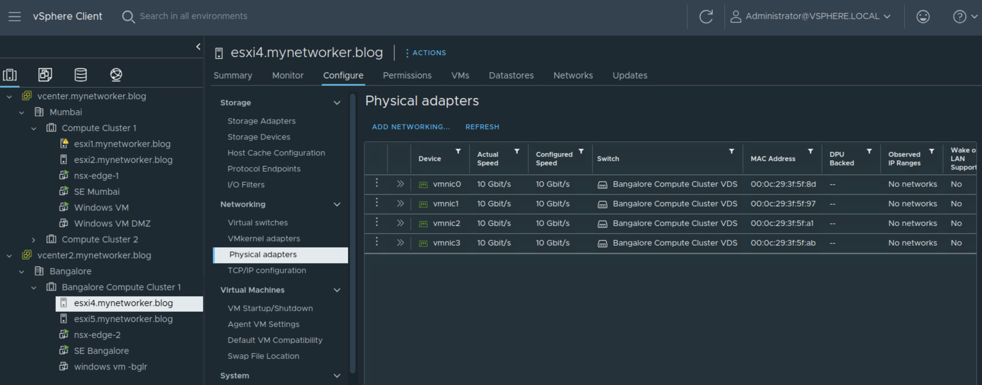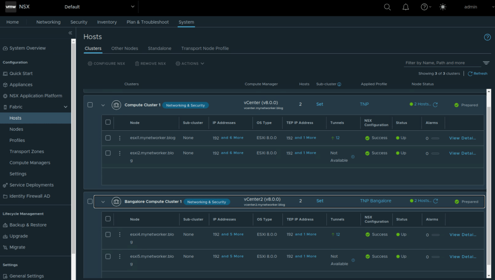 Note: Compute Cluster 2 in Mumbai location can be ignored for now and this cluster will not be prepared for NSX.