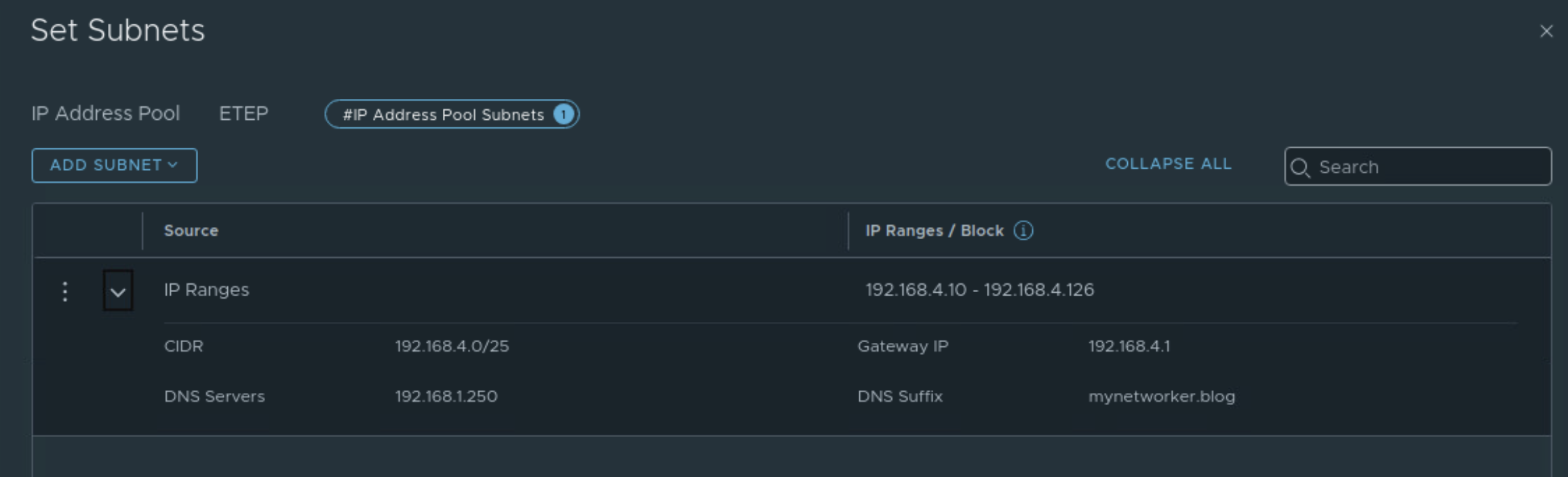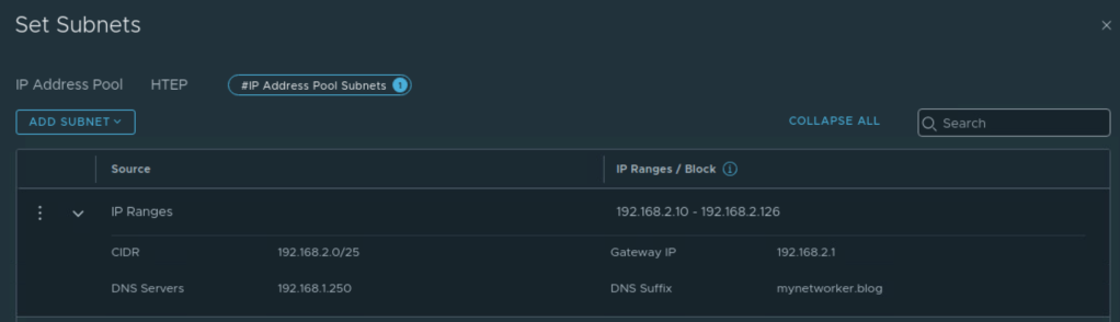 TEP pool for NSX edges is configured. This VLAN for NSX edge TEPs is again stretched between AZ1 and AZ2.