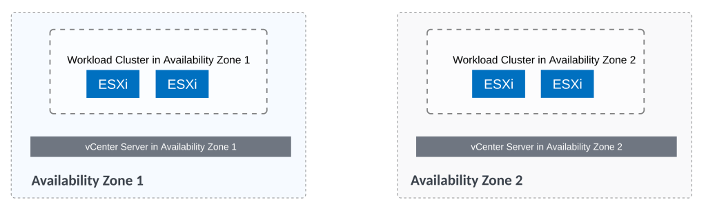 This custom use case has vcenter server in each location. So vcenter server in AZ1 and another vcenter server in AZ2. There are no stretched vSphere clusters in this lab environment.