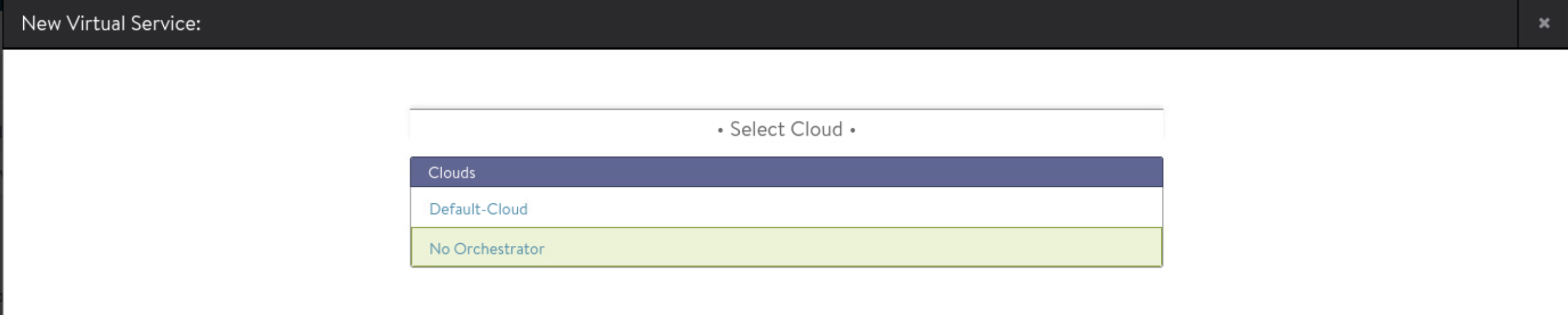 Next create virtual service under ‘No Orchestrator’ cloud.
