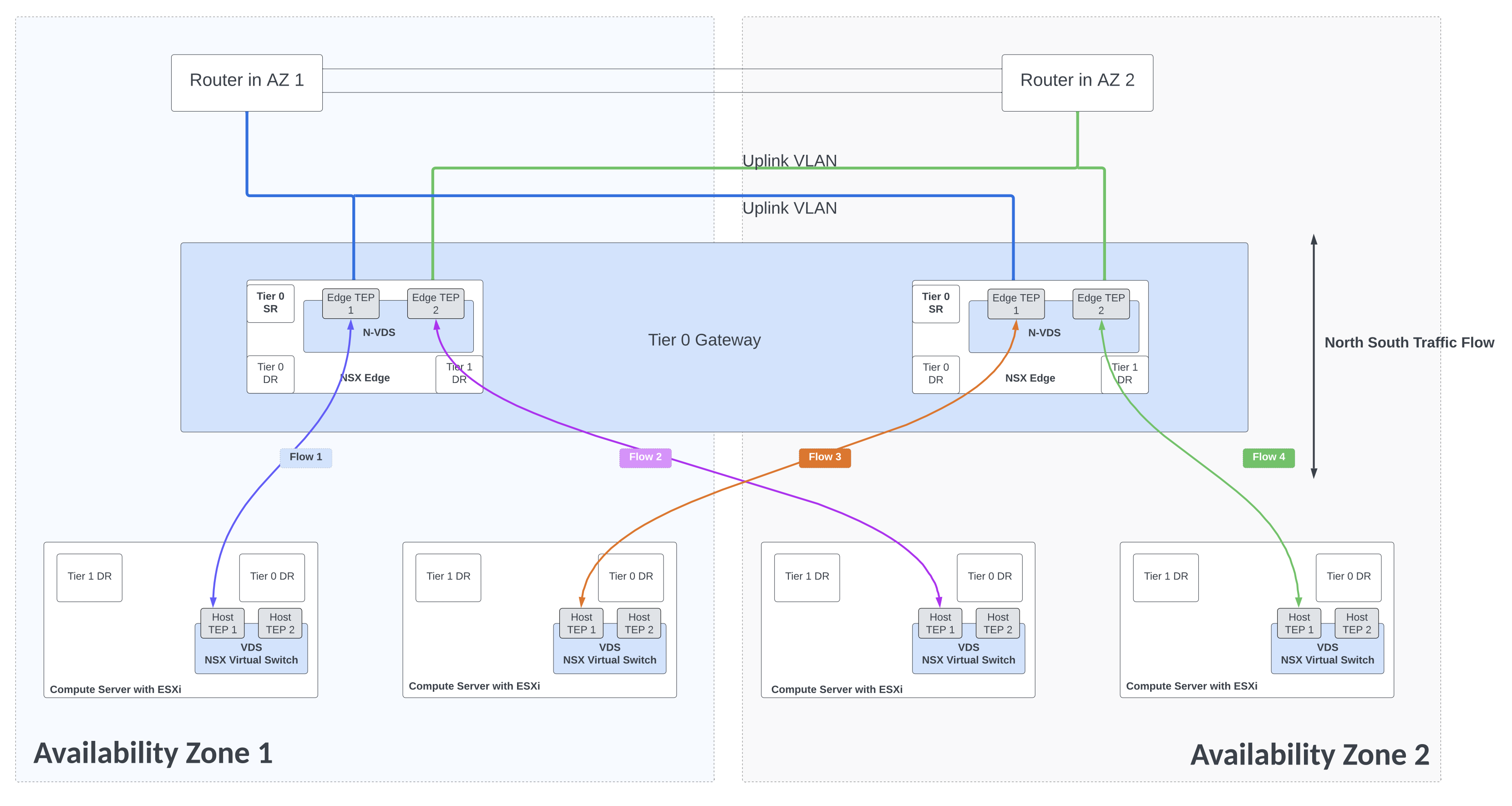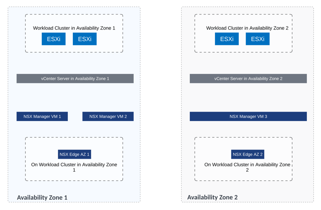 Single NSX manager instance is used in this setup and all the servers in AZ1 and AZ2 are NSX prepared using this single NSX instance.