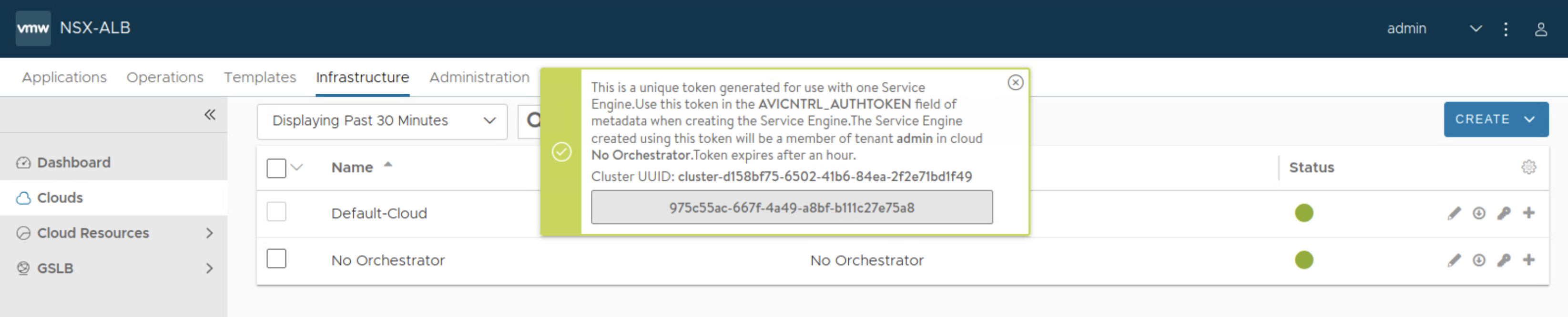While deploying the OVA for service engine, token will be needed. You can fetch this from NSX ALB UI as shown below, make sure token is for the cloud type ‘No Orchestrator’