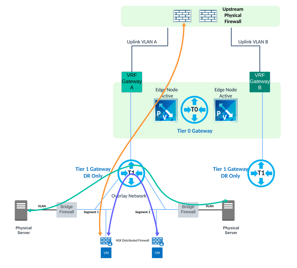 Build required NSX-T topology, sample topology is shown below using VRF gateways and Tier 1 Gateways.
