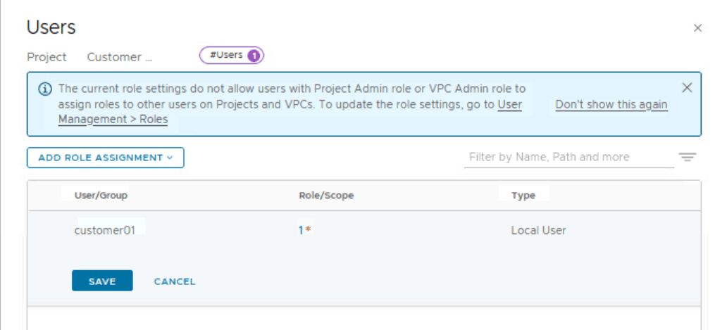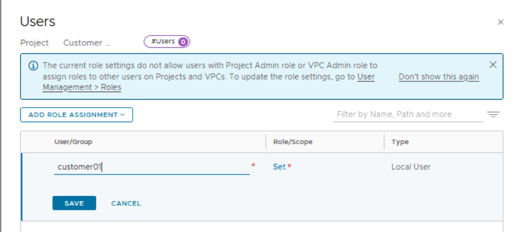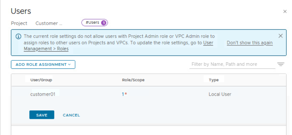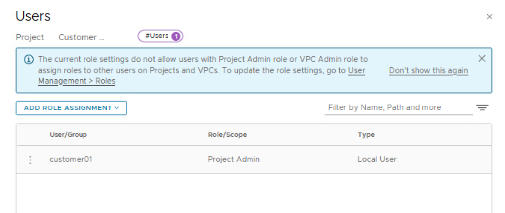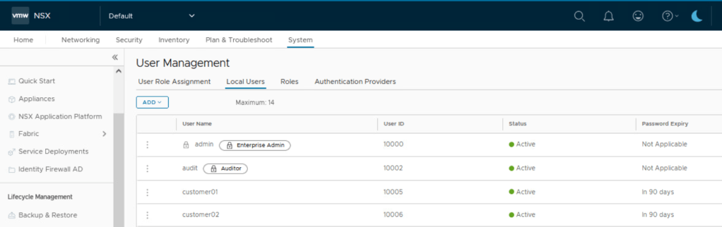In this lab, there are local users created for each NSX project/customer.
