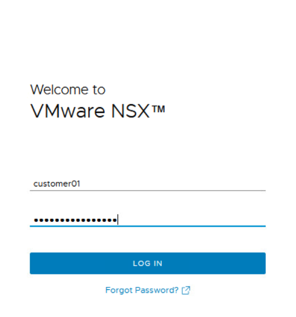 Let’s login now to the NSX Manager using the user for customer 01