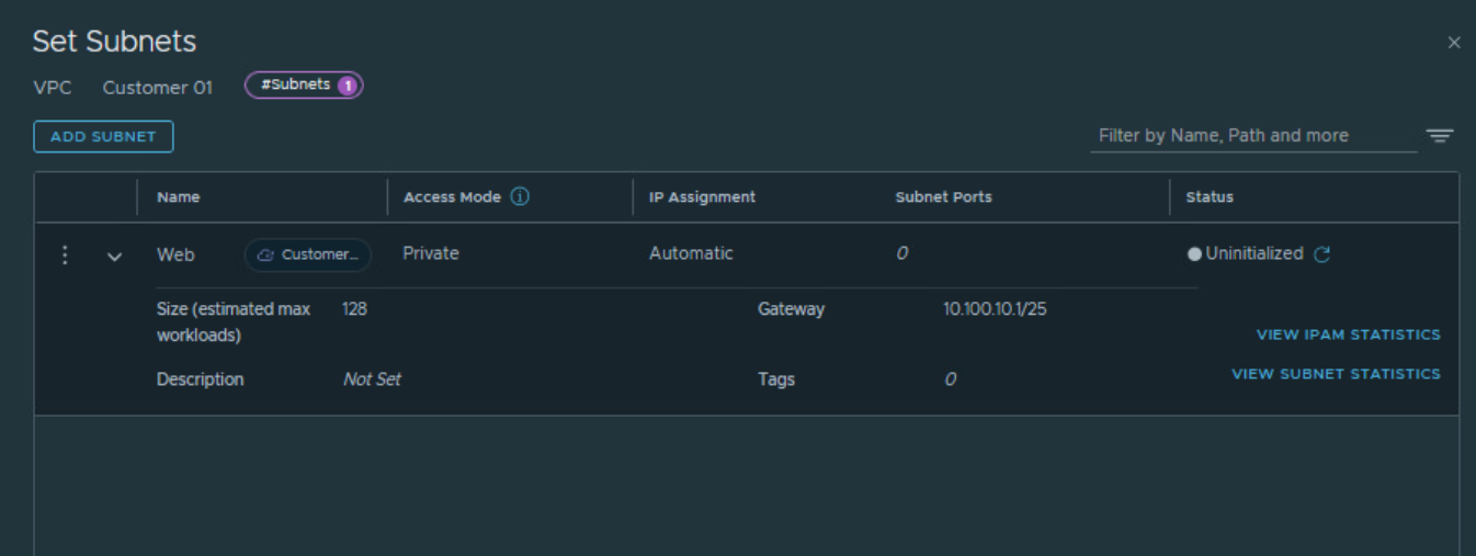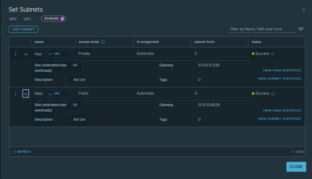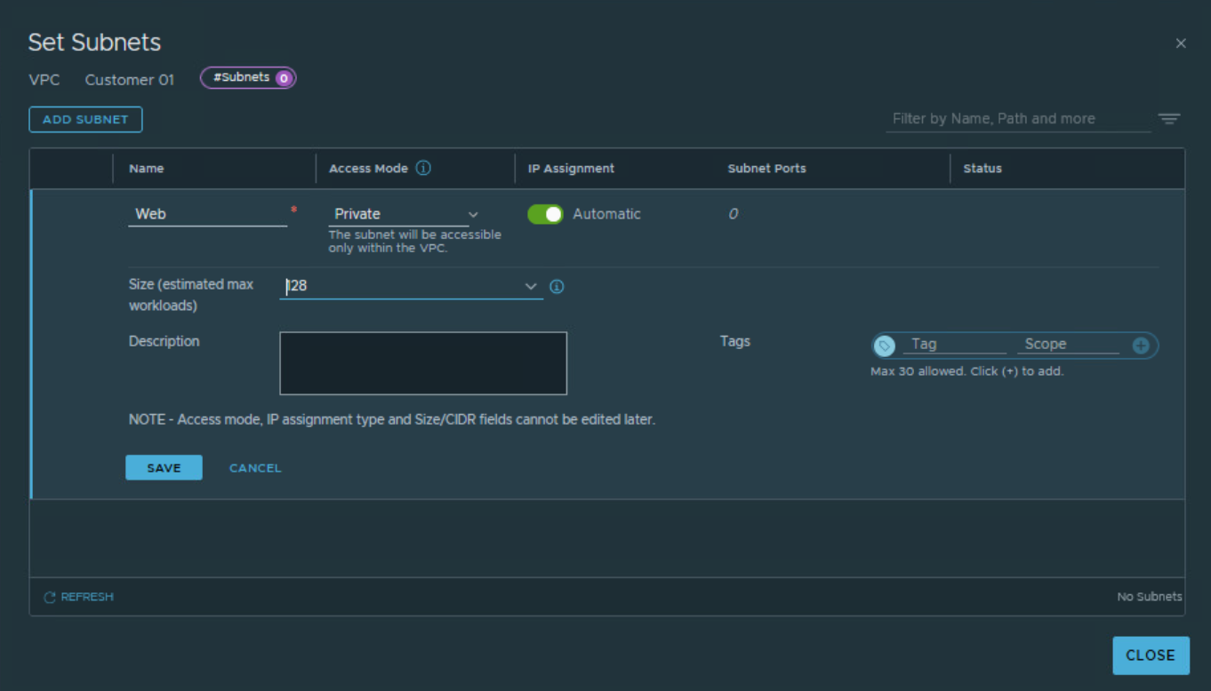 Subnets inside NSX VPC