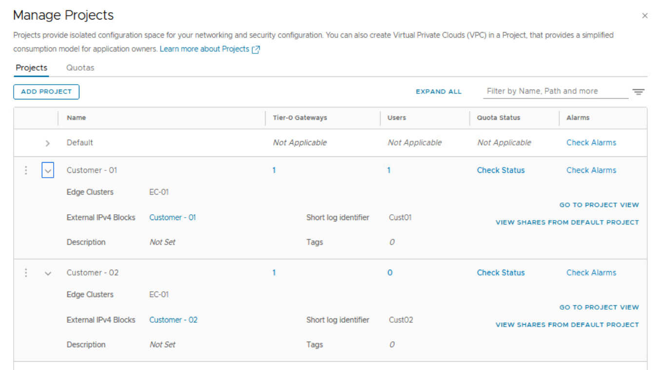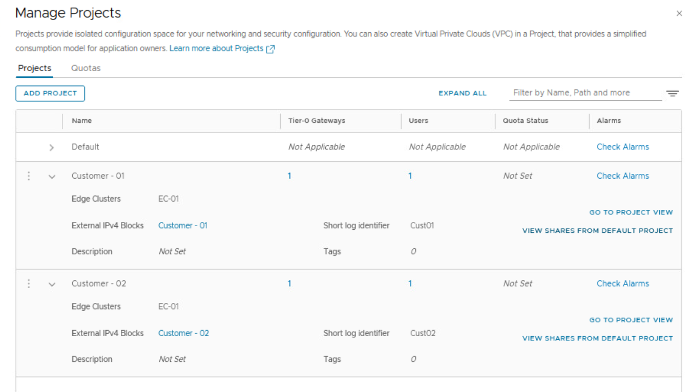 Likewise, create another NSX project for customer 02