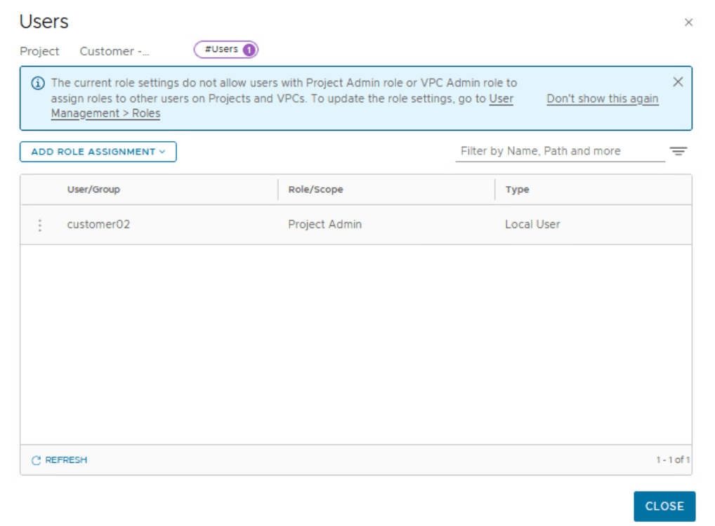 NSX enterprise admin can view all the projects in the system. Users that are assigned to specific projects with roles, such as Project Admin, Security Admin, Network Admin, Security Operator, and Network Operator can view the projects that they have access to.