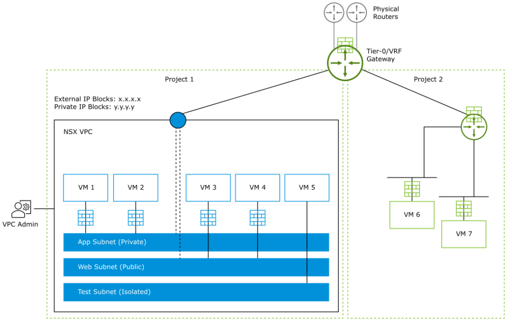 NSX VPCs represent an additional layer of multi-tenancy within a project. NSX VPCs reside inside a particular NSX project. Multiple NSX VPCs can be created in NSX project.