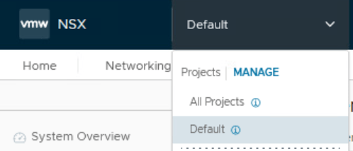 Login to NSX Manager UI as project admin and navigate to the NSX Project.