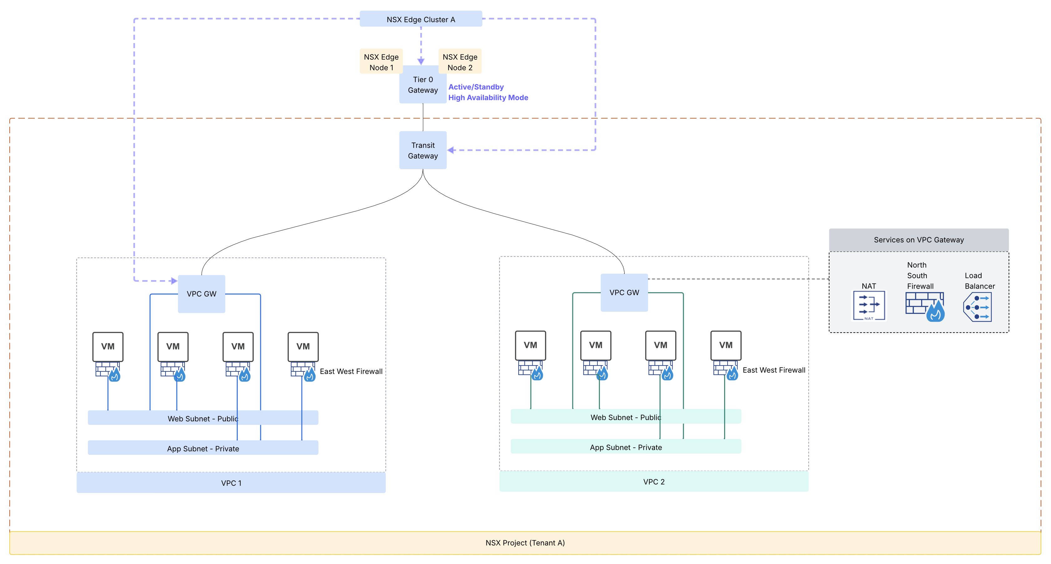 - Tier 0 Gateway configured in Active/Standby High Availability Mode.