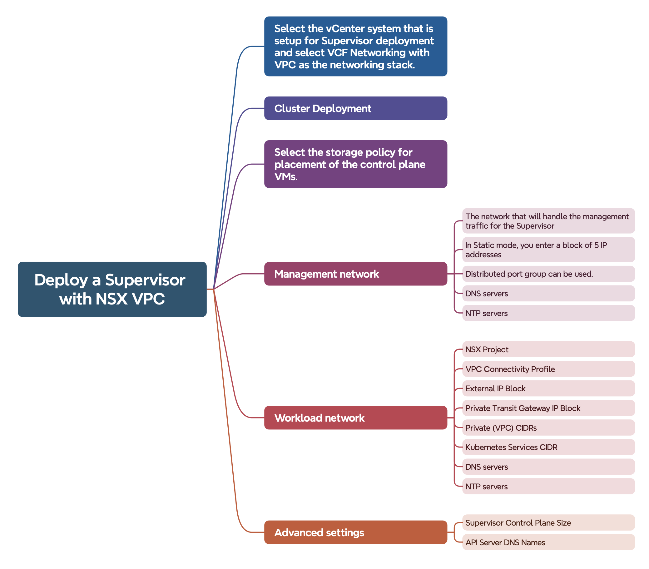 - Workload network, NSX VPC related requirements